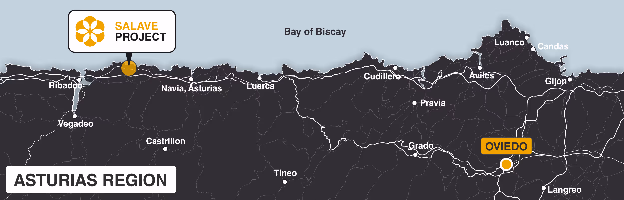 The Salave gold deposit is situated on the northern coast of the Iberian Peninsula, in the Asturias region of Spain. The nearest village is Tapia de Casariego (population 3,500) about two kilometres west of the Salave gold project. The nearest city is Oviedo (population 220,000) about 140 km east of the project (2012 population, Instituto Nacional de Estadistica).